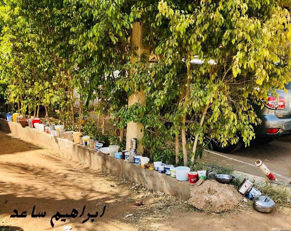يلاحظ المارة يومياً في شارع عبد الله الطيب جوار شركة سكر النيل الأبيض صفاً من الأواني المتنوعة أمام إحدى البيوت فيما يتوزع أصحابها في ظل حائط البيت أو الأشجار في انتظار بداية التوزيع ..