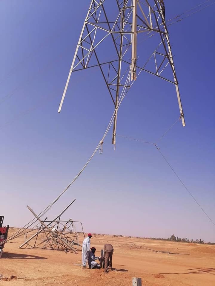 وقالت وزارة الطاقة والتعدين إنها بدأت في إصلاح أبراج كهرباء الضغط العالي (٢٢٠) كيلو فولت التي كانت قد تعرضت للنهب والتخريب بسحب أجزائها وآل بعضها إلى السقوط التام.