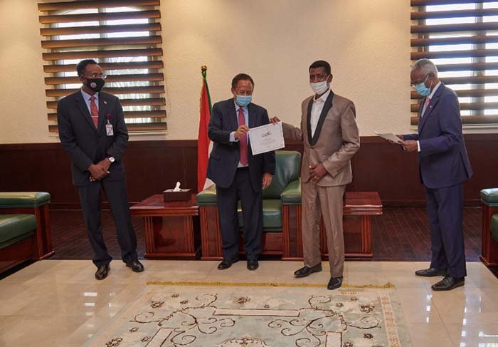 منح رئيس مجلس الوزراء السوداني عبد الله حمدوك شهادات تقديرية وحوافز مالية للمجموعة التي أسهمت في ضبطية الذهب بمطار الخرطوم “البالغ وزنها سبعة كيلوجرامات ونصف”.