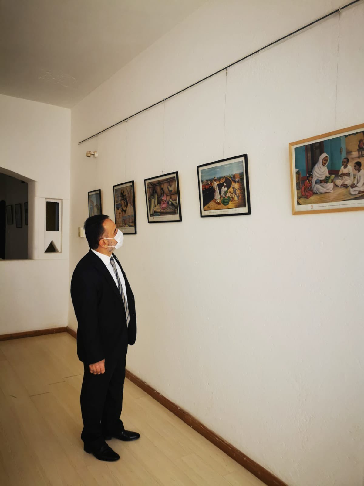 وكتب السفير : “قمنا بزيارة الفنان راشد دياب بمركزه الذي يحمل اسمه بالخرطوم حيث يعتبر السيد دياب من أشهر وأهم الفنانين التشكيليين السودانيين المشهورين عالمياً”.