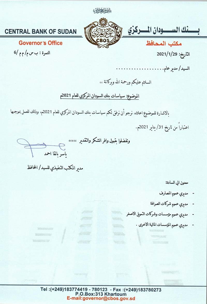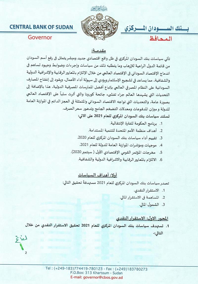 “اوبن سودان” ينشر تفاصيل سياسات بنك السودان المركزي للعام 2021 في يناير 30, 2021 شارك الخبر لمجموعاتك: ينشر موقع “اوبن سودان” أدناه تفاصيل سياسات بنك السودان المركزي للعام 2021: