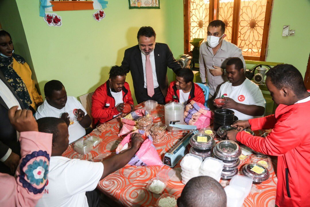 كتب السفير التركي بالسودان عرفان أوغلو على صفحته بتويتر يقول: “قمنا بنقل أطفالنا المصابين بمتلازمة داون الي مبناهم الجديد. وخطتنا القادمة هي إفتتاح أول مقهى يتم إدارته من قبل مصابين متلازمة داون في السودان. وأود أن أشكر رجال الأعمال الأتراك واتحاد TOSSFED الرياضي على دعمهم لنا في هذا المجال”.