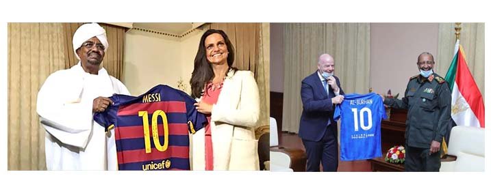 التقى رئيس مجلس السيادة الانتقالي الفريق أول عبد الفتاح البرهان ظهر يوم الإثنين جياني إيفانتينو رئيس الاتحاد الدولي لكرة القدم (فيفا) الذي يزور السودان ليوم واحد. وأرسلت للإعلام صور من اللقاء يبدو فيها إيفانتينو وهو يهدي البرهان كرة قدم، و”قميصاً ” رياضياً، يحمل شعار الفيفا، وإسم “البرهان” على ظهره ويحمل الرقم 10.