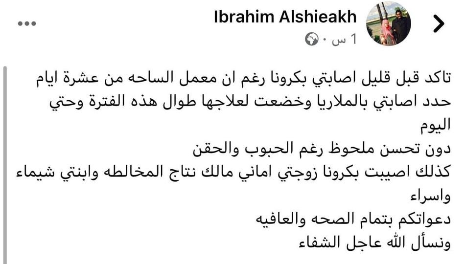 أعلن وزير التجارة إبراهيم الشيخ إصابته بفيروس كورونا. وقال الوزير إن زوجته وابنتيه أصيبتا بالفيروس أيضا. وقال الشيخ إنه شُخّص قبل أيام بالملاريا إلا أن حالته لم تتحسن رغم خضوعه لعلاجها. وكانت وزارة الصحة بولاية الخرطوم قد حذرت مؤخرا من موجة ثالثة من وباء كورونا بعد رصدها لتزايد حالات الإصابة بالفيروس في الولاية.