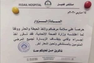 اعلنت عدة مستشفيات بولاية الخرطوم ايقاف الزيارات اليومية للمرضى من اسرهم تماما تحسبا لمواجهة فيروس كورونا .