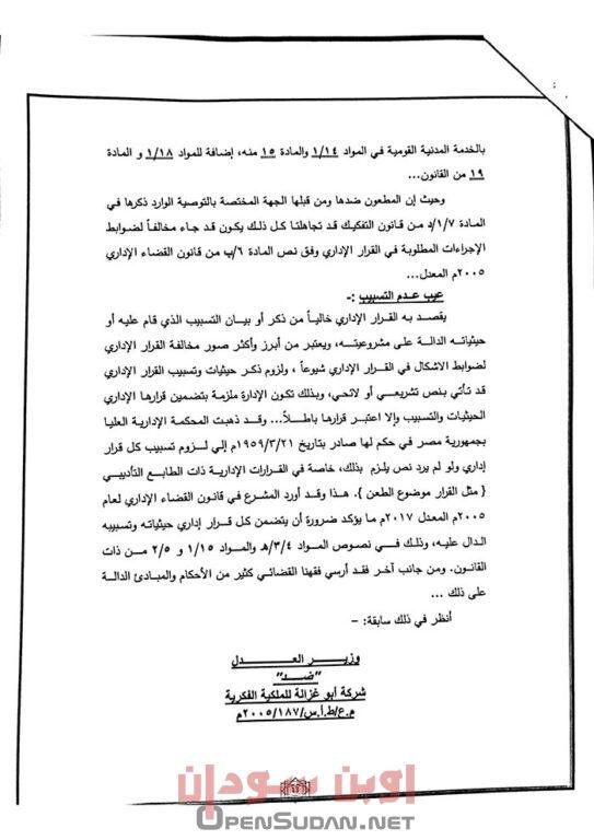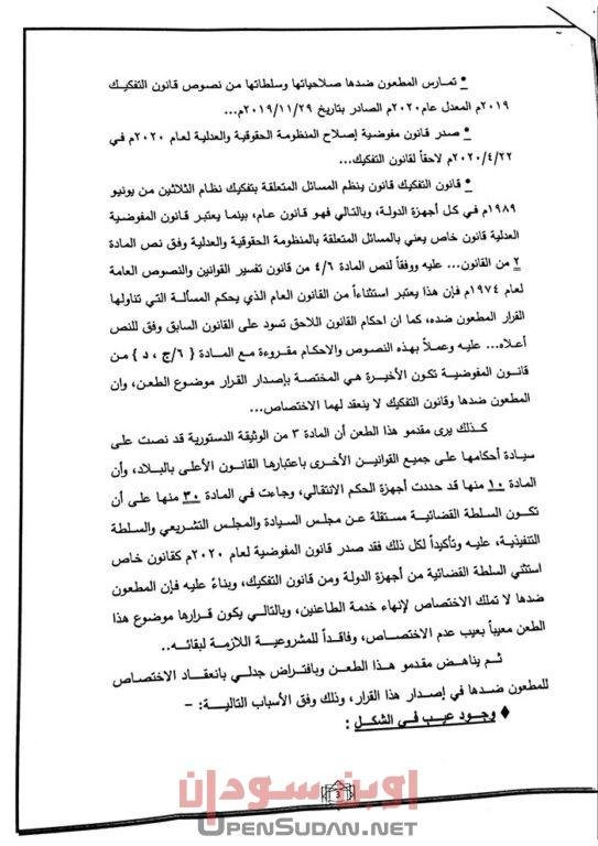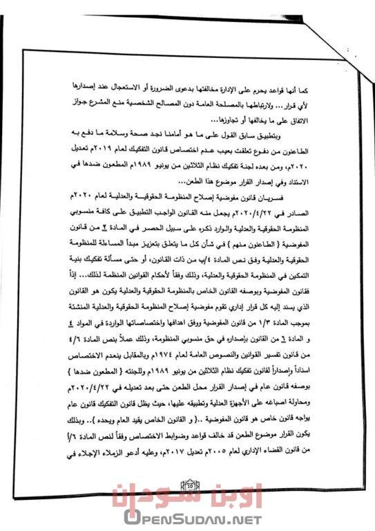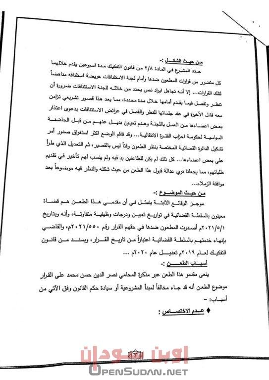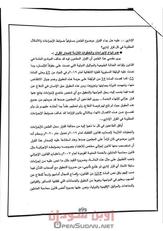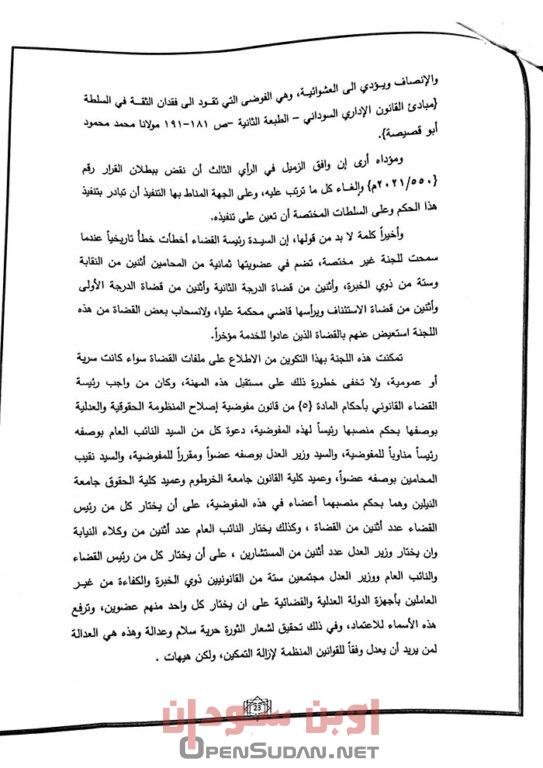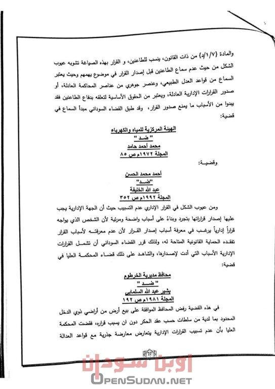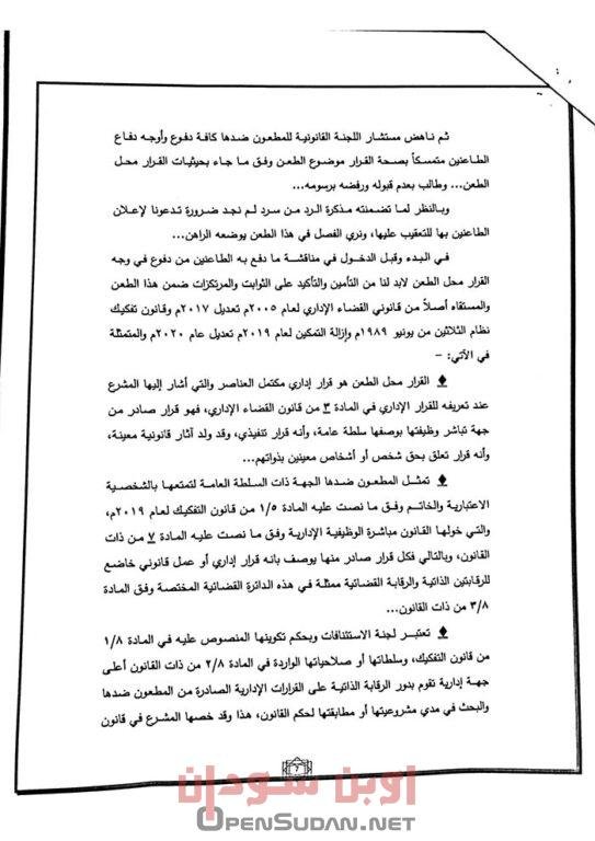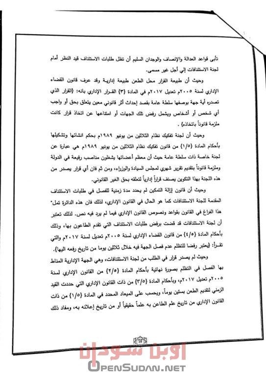 يورد موقع “اوبن سودان” أدناه ملف PDF للحكم الذي أصدرته المحكمة القومية العليا بإبطال قرار لجنة إزالة التمكين رقم 550 بفصل مجموعة من القضاة. وفي الحكم قالت المحكمة العليا أن لجنة إزالة التمكين غير مختصة بإصدار مثل هذا القرار.