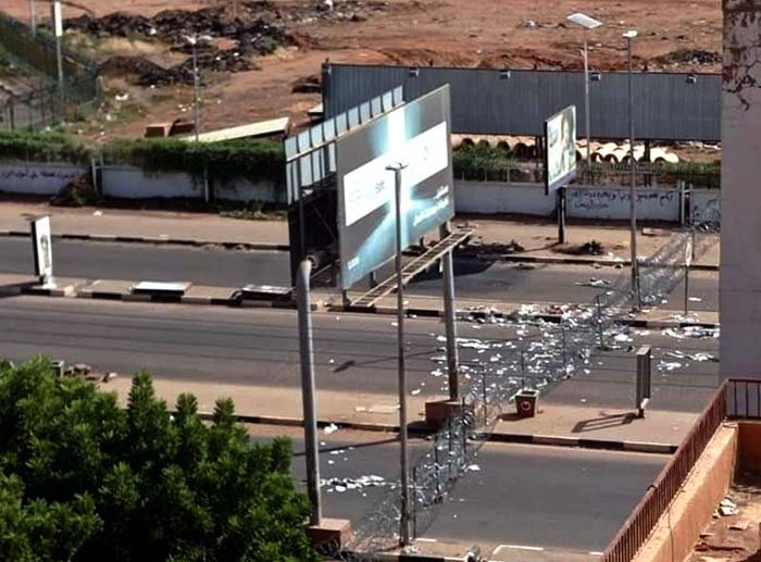 تداول متصفحون لواقع التواصل الإجتماعي السودانية صباح السبت صورة لشارع المطار في الخرطوم وقد وضعت حواجز من الأسلاك الشائكة به، لمنع المرور، قبل ساعات قليلة من مواكب يوم 30 أكتوبر، المعارضة لقرارات الفريق البرهان الأخيرة. ولم تنشر الجهات المنظمة للمواكب مسارات بعينها للمشاركين، لكن شارع المطار كان من ضمن المواقع التي تشهد عادة تجمع أعداد كبيرة من المتظاهرين في الفترة السابقة.