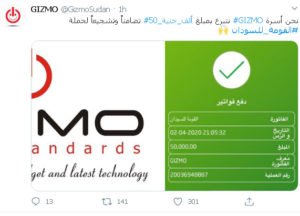 ونشر رواد مواقع التواصل الاجتماعي السوداني صوراً لإيصالات واشعارات التحويلات المالية التي ساهموا بها للحملة