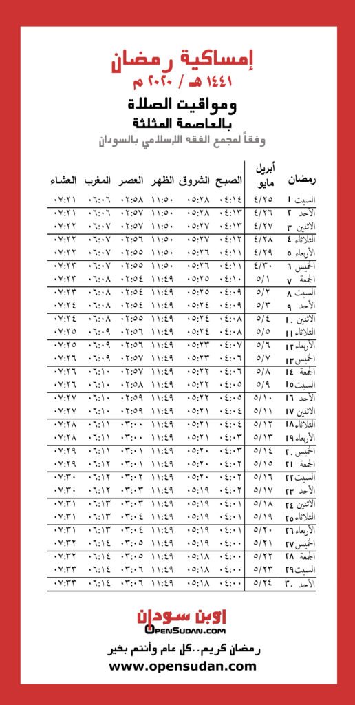 إمساكية رمضان 1441هـ-2020م بولاية الخرطوم