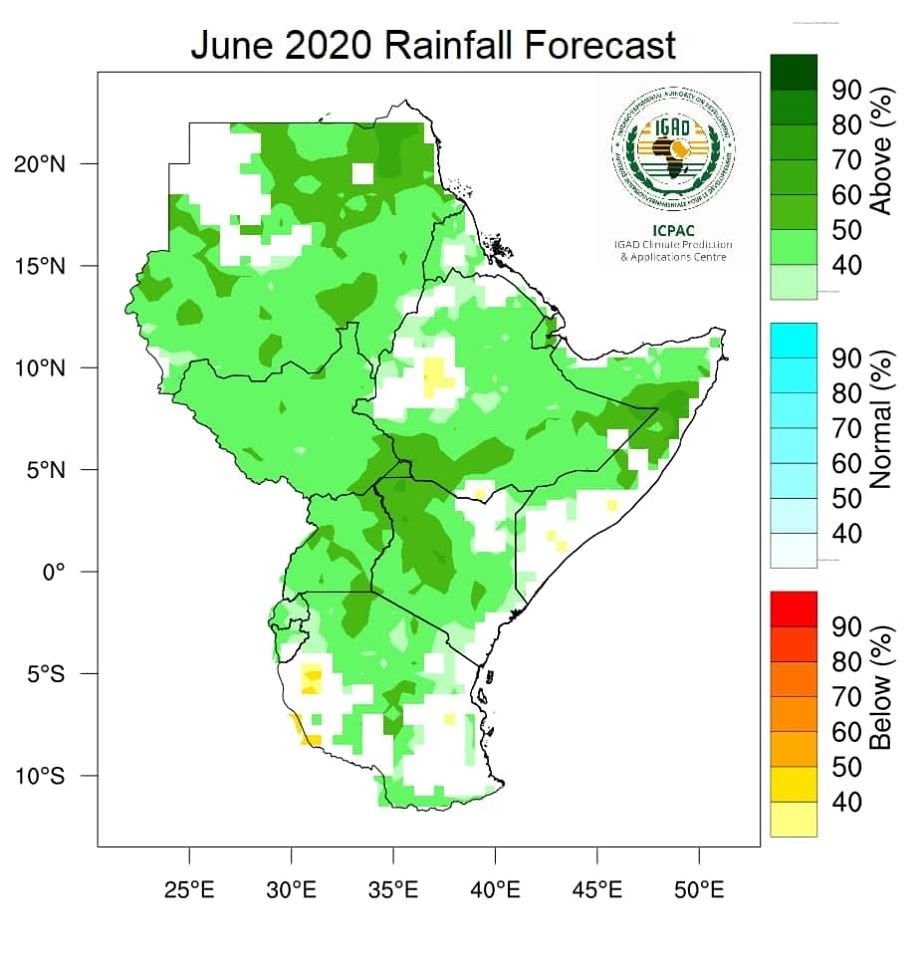 نشرت الهيئة العامة للارصاد الجوية السودانية توقعات بشأن خريف هذا العام بالسودان. وقالت الهيئة انه وفقاً لمركز الإيقاد للتوقعات المناخية فانه يتوقع هطول يتوقع أمطار أعلى من المعدلات المناخية للسودان لشهر يونيو ٢٠٢٠.