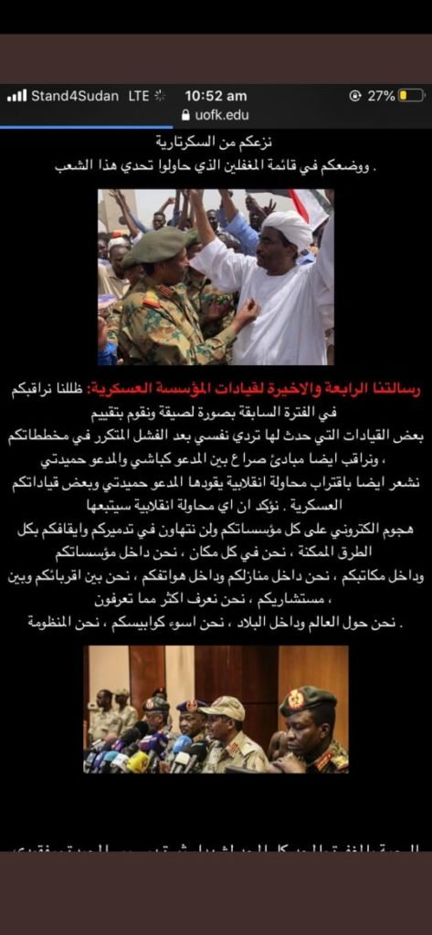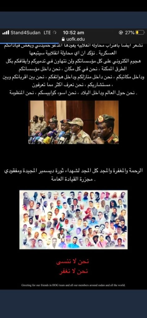 اخترقوا موقع جامعة الخرطوم: هكرز يحذّرون من انقلاب عسكري ويتهمون السياسيين بخذلان الثورة