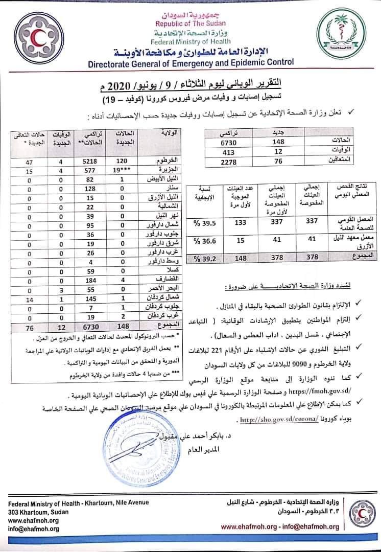 تقرير كورونا اليومي: انخفاض نسبي للحالات في السودان