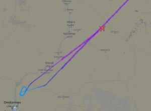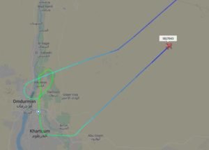 ووصلت الطائرة الامارتية وهي من طراز بوينغ 777 الى مشارف منطقة الجيلي شمال الخرطوم ودارت لمرتين حول المنطقة قبل ان تعود ادراجها . وكان مقررا لها الهبوط بعد الواحدة ظهرا في مطار الخرطوم.