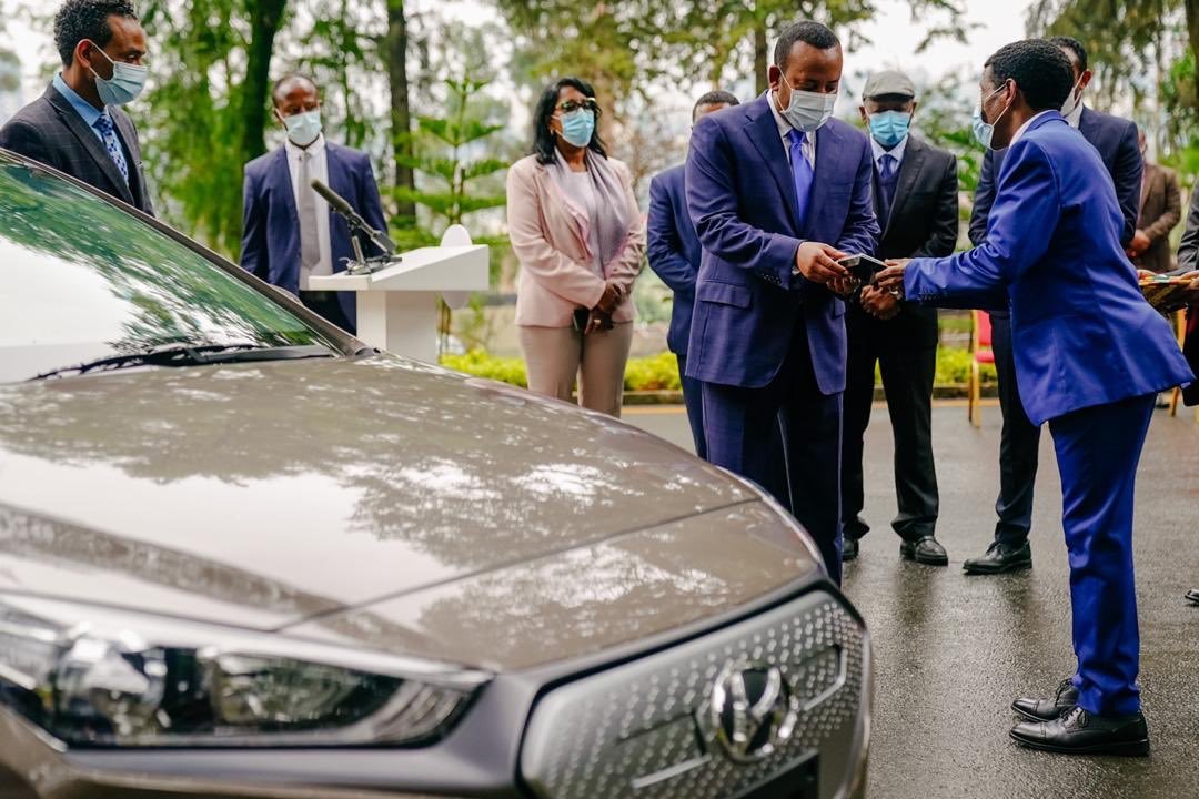 رئيس الوزراء الأثيوبي آبي أحمد يتسلم أول سيارة كهربائية تم تجميعها بالكامل في أثيوبيا ، وقام العداء السابق ورئيس مجلس إدارة شركة “ماراثون موتورز” للسيارات وكيل شركة هيونداي في إثيوبيا هيلي جبر سيلاسي بتسليم السيارة لرئيس الوزراء.