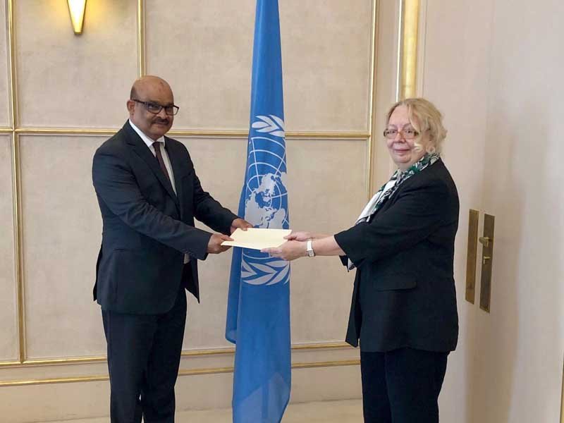 قدم السفير على بن أبي طالب عبد الرحمن الجندي يوم الخميس ، أوراق إعتماده مندوباً دائماُ لجمهورية السودان لدى مكتب الأمم المتحدة والمنظمات الدولية الأخرى بجنيف لمديرة مكتب الأمم المتحدة بجنيف تاتيانا فالوفايا.