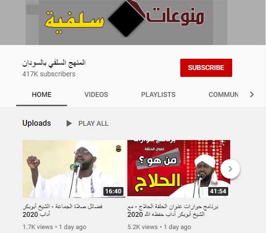 1- حلّت قناة “المنهج السلفي بالسودان” في المركز الأول بين قنوات اليوتيوب السودانية، محققة 417 الف مشترك و 113 مليون مشاهدة. تم انشاء قناة المنهج السلفي في السودان في 28 اغسطس 2015 وتركز على تقديم تسجيلات فيديو للشيوخ مزمل فقيري وابوبكر اداب وغيرهما.