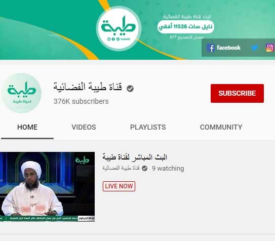 2- حلّت في المركز الثاني “قناة طيبة الفضائية” على يوتيوب، التي بلغ عدد مشتركيها 376 الف مشترك وبلغت مشاهداتها 110 مليون مشاهدة. وتم انشاء قناة اليوتيوب التابعة لقناة طيبة الفضائية في 23 يناير 2012 وتقدم برامج قناة طيبة التلفزيونية الفضائية .