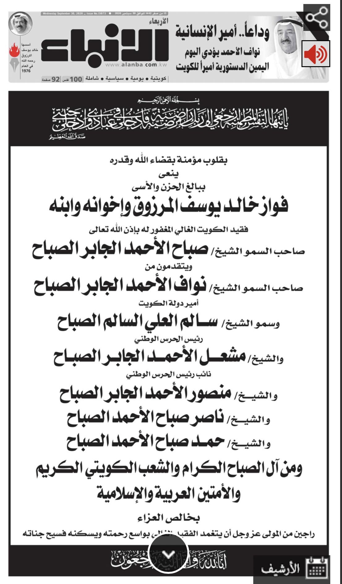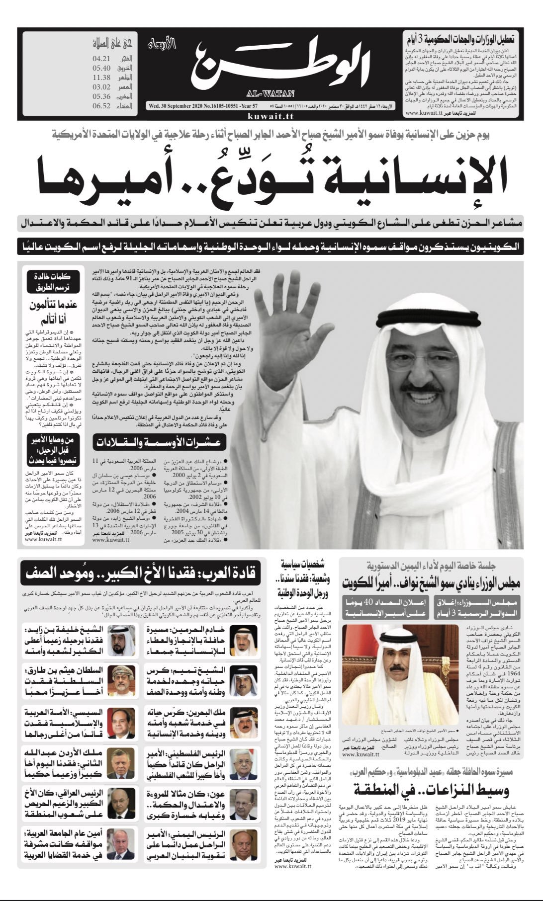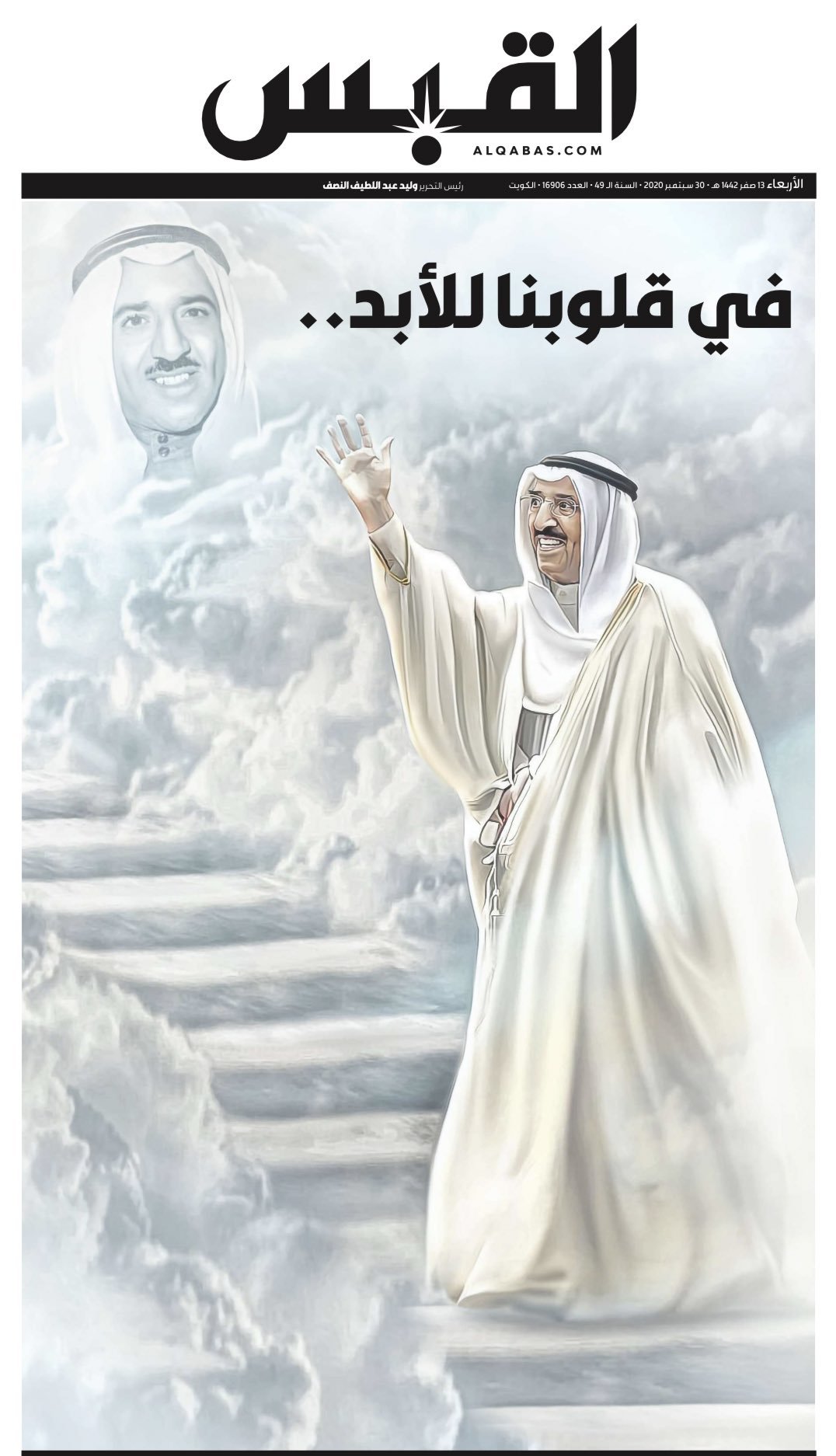 الصفحات الأولى لصحف الكويت في وداع أمير البلاد